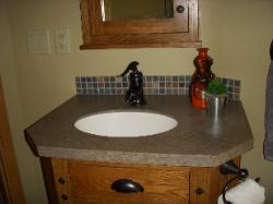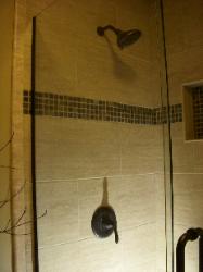 recreation area of the home. We styled the bath with custom cabinetry in the Craftman style,