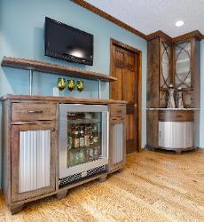 entertaining use. It is complete with it's own sink and small refrigerator. The middle section of the