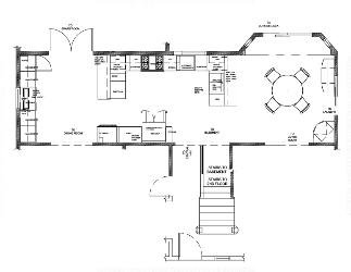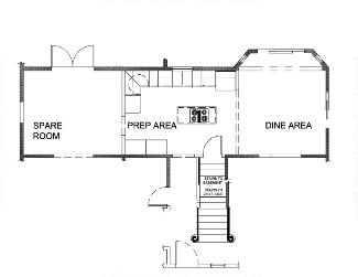 kitchen is the main food prep area with ovens, stove, refrigerator and sink. The south area is the